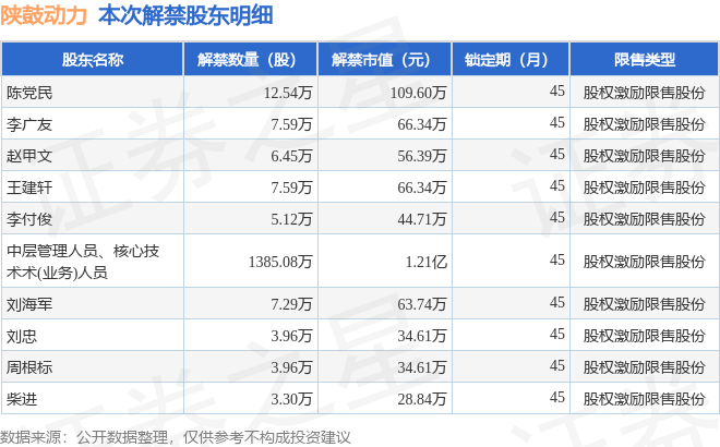 证券之星消息,根据市场公开信息整理,陕鼓动力(601369)于6月27日将有1442.88万股限售股份解禁,为公司股权激励限售股份,占公司总股本0.84%。(本次数据根据历史公告整理得出,实际情况以上市公司最新公告为准)最近一年内,该股累计解禁43.56万股,占总股本的0.03%。本次解禁后,公司还有1767.85万股限售股份,占总股本1.03%。具体如下图所示: